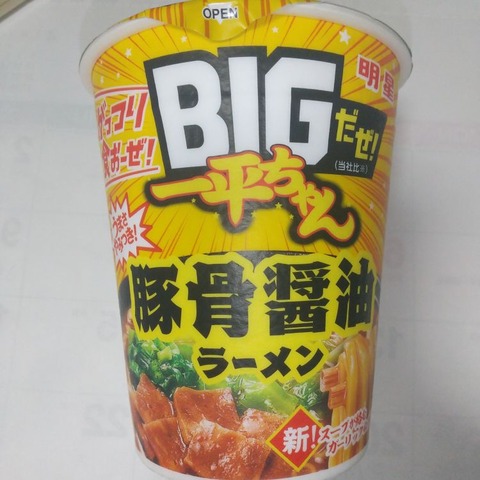 味はしっかり醤油の味を感じる豚骨だ。麺は他社に比べると細く感じてしまうがまあ、標・・・